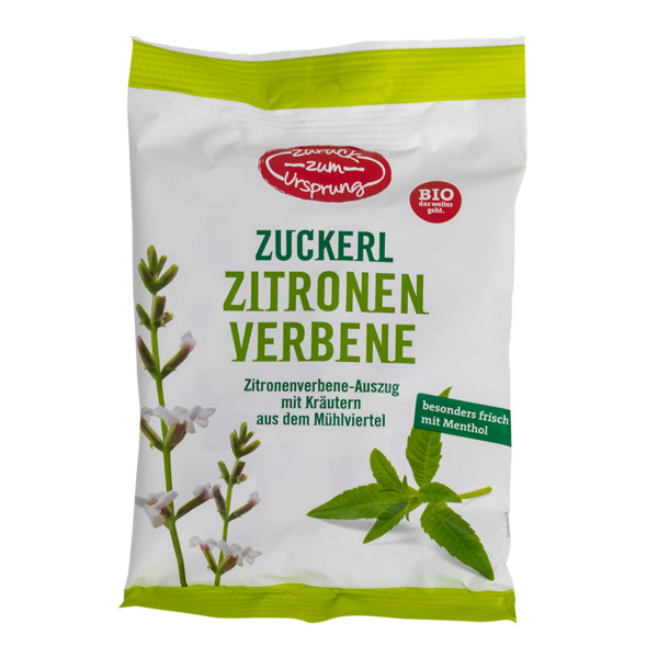 85gHochwertiger Zitronenverbene-Auszug mit Kräutern aus dem Mühlviertel, Minzöl, sowie natürliches Menthol geben den Zitronenverbene-Zuckerln von Zurück zum Ursprung den unverwechselbaren Geschmack. Die Bio-Zuckerl werden in Wien mit viel Sorgfalt hergestellt.